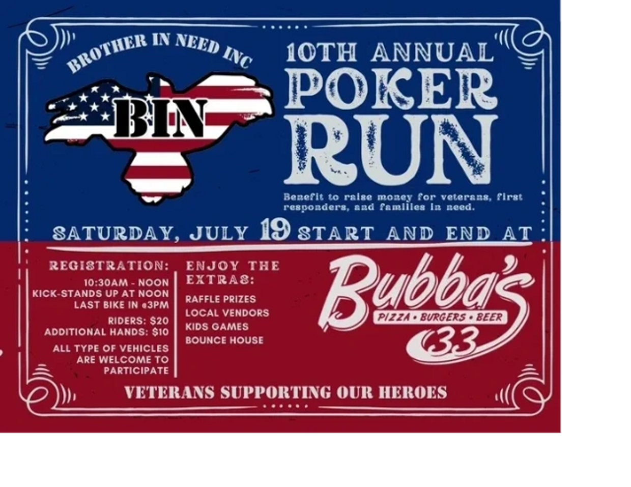 Come and join us on July 19 at Bubba’s 33 for our exciting 10th annual poker run! This event supports our efforts to assist those in need within our community.